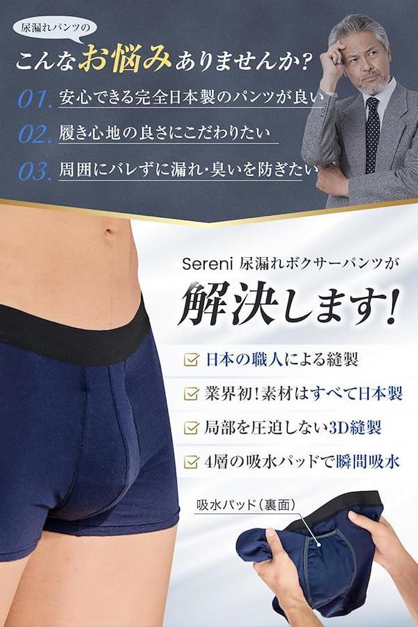 男性用吸水パンツ特化ブランドのSereniが開発した日本製モデル。