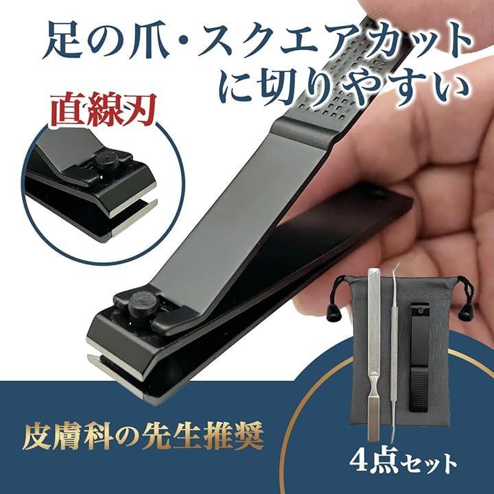・「直線刃爪切り」に「爪やすり」「巻いた爪用ヤスリ付きゾンデ」「専用ケース」付き4点セット。