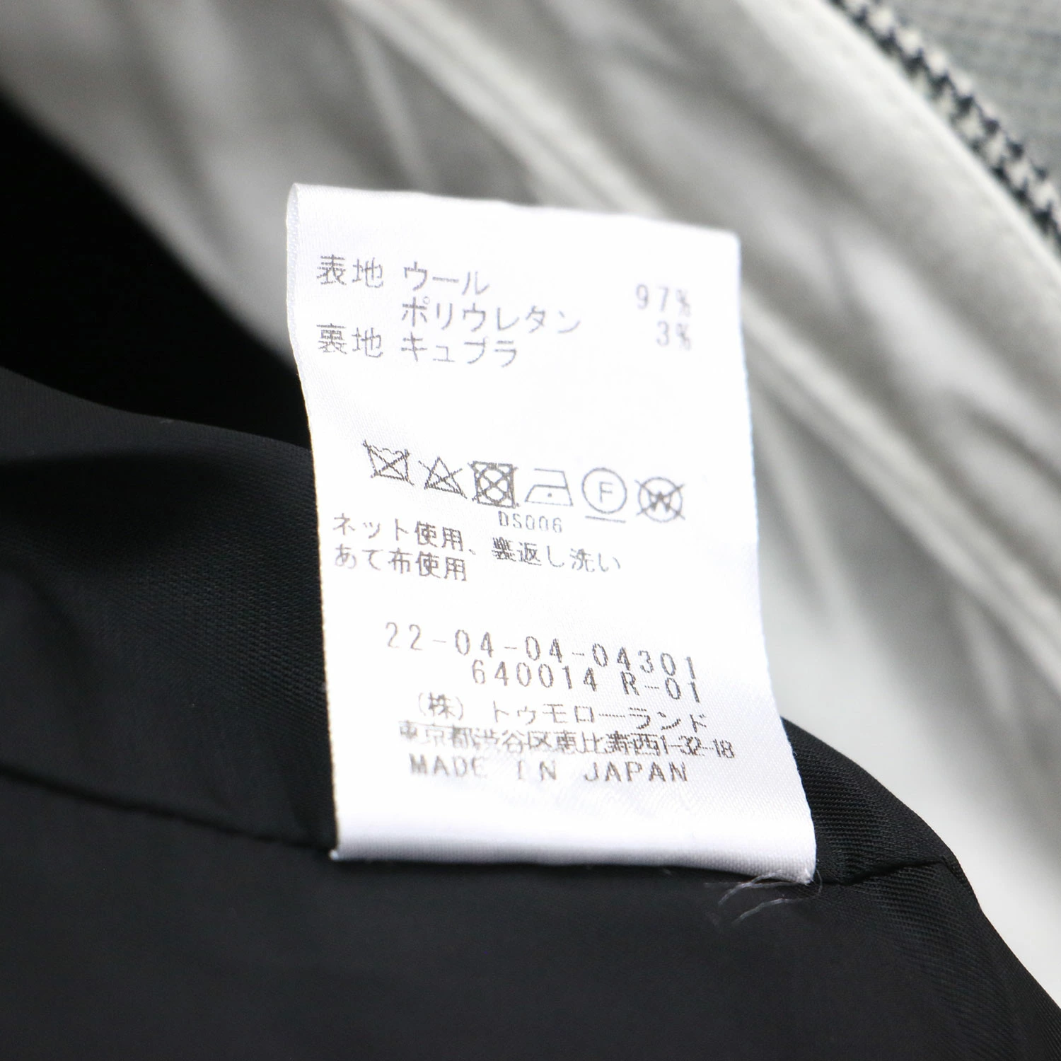 | 素材 | 表地 ウール 97% ポリウレタン 3% 裏地 キュプラ |
