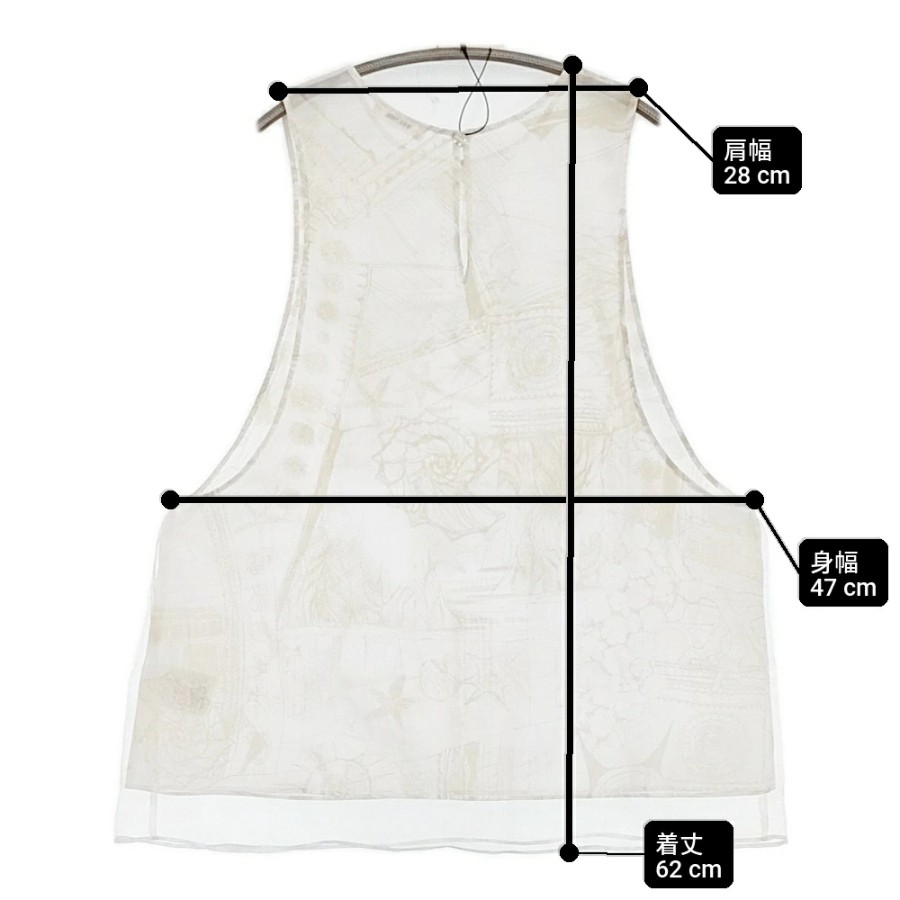 | 実寸サイズ | 肩幅:約28cm 着丈:約62cm 身幅:約47cm ※採寸画像がある商品はハンガーに吊るした状態での計測のため、平置きでの採寸とは差が生じる場合がございます。平置きでの実寸サイズをご希望の場合は、ご購入前に必ずご質問ください。 ※記載以外のサイズが合わないことを理由とした返品はできませんので、 記載部分以外で実寸サイズの気になる箇所があれば必ず購入前にご質問ください。 |