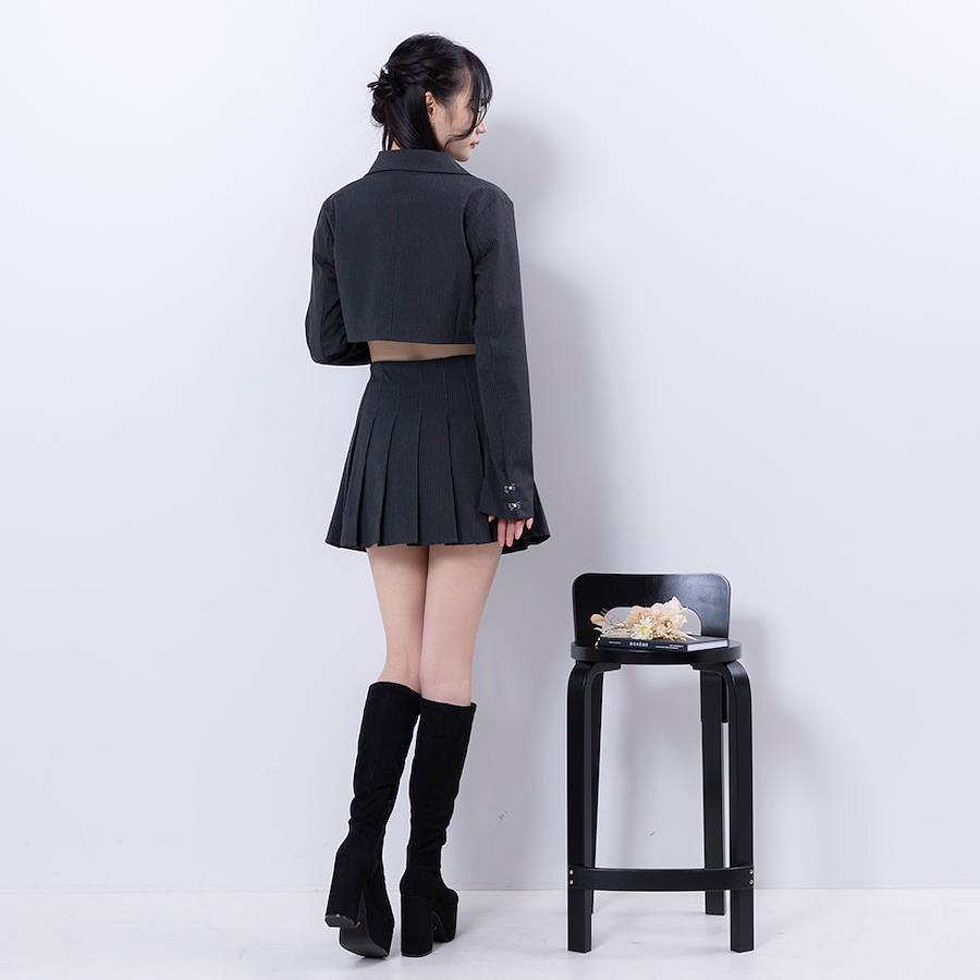 同素材で展開されているプリーツミニやサス付きスカートとセットアップコーデを楽しんだり、単品使いもおすすめなアイテムとなっています。【素材】ブラックは柔らかいカットソー素材、ピンストライプはややハリ感があります。