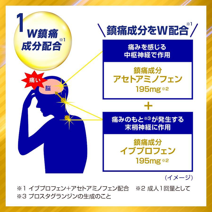 ○イブプロフェンとアセトアミノフェンのダブル鎮痛成分を配合。
