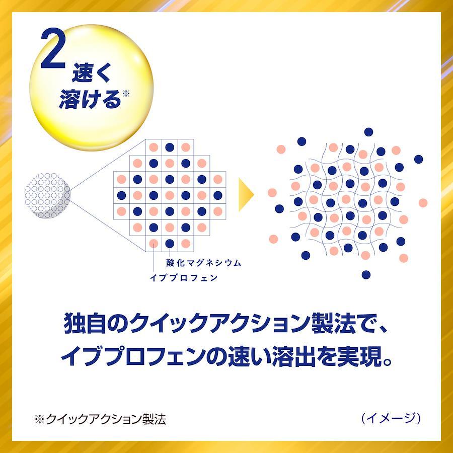 ○イブプロフェンの速い溶出を実現した独自技術クイックアクション錠を採用。
