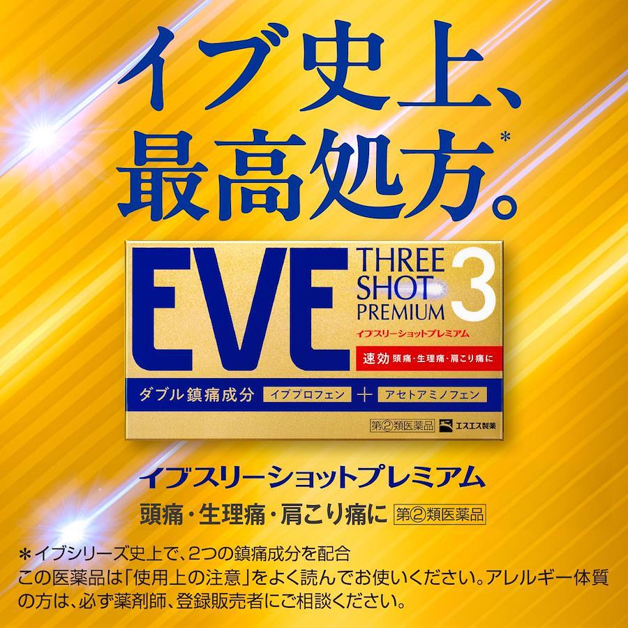●イブスリーショットプレミアムは、頭痛、生理痛、肩こり痛にしっかり効くように設計