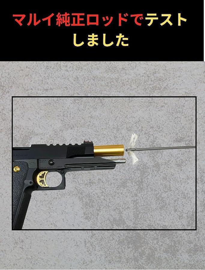 「マルイ純正ロッド対応」マルイ純正のクリーニングロッド(6mm対応)で設計されているため、多くのユーザーが既存の装備でそのまま使用可能。