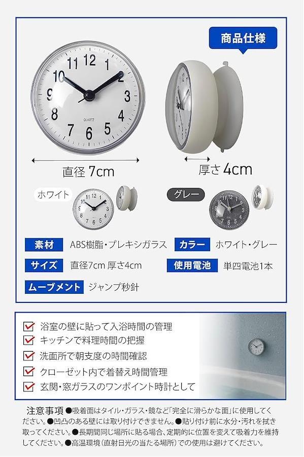 「商品仕様」 防水アナログ時計・サイズ7x7x4cm・1個入り・グレー・単4電池1本駆動(別売)・吸盤付き・置き型/掛け型両対応