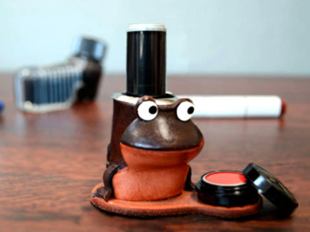 サイズ H 50 mm × W 75 mm × D 45 mm※一つ一つ手作りのため実際の商品は写真と多少異なる場合があります。玄関先で、可愛らしい動物が迎えてくれます。朱肉つきなので便利です。