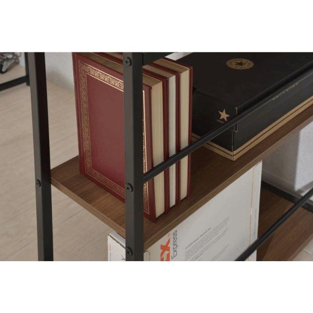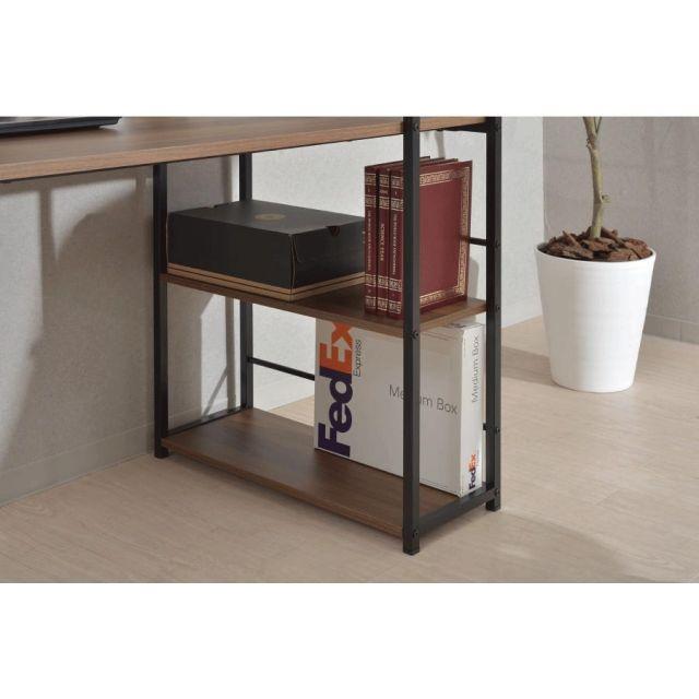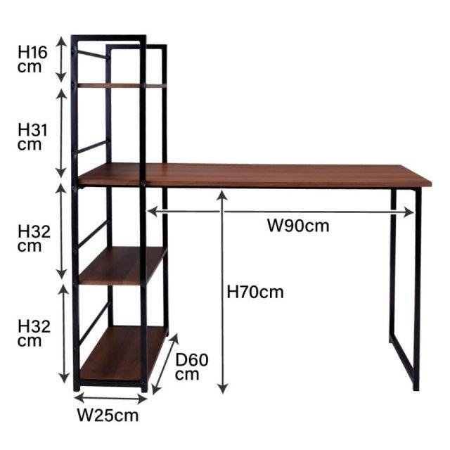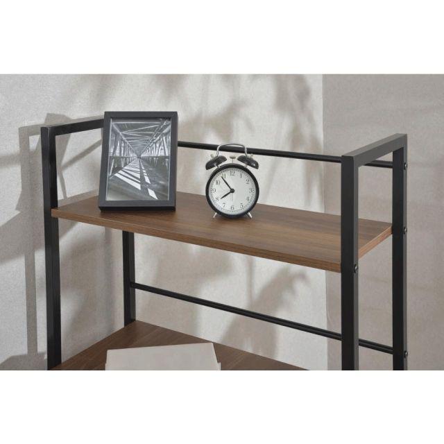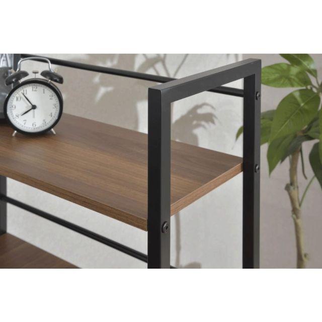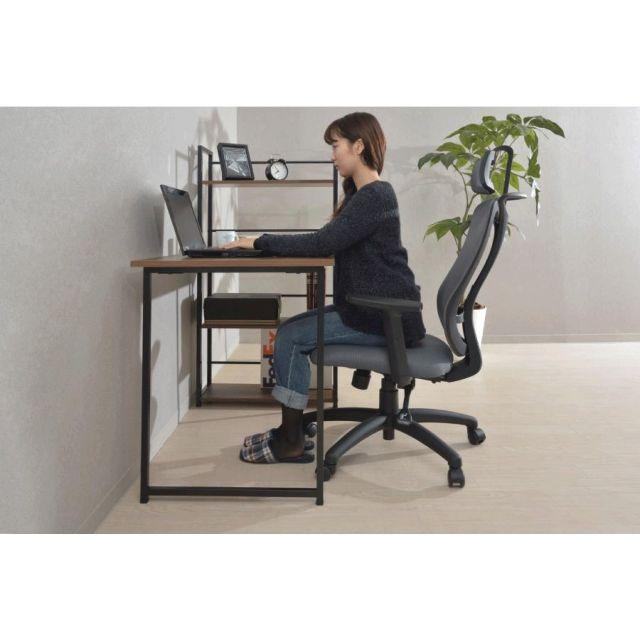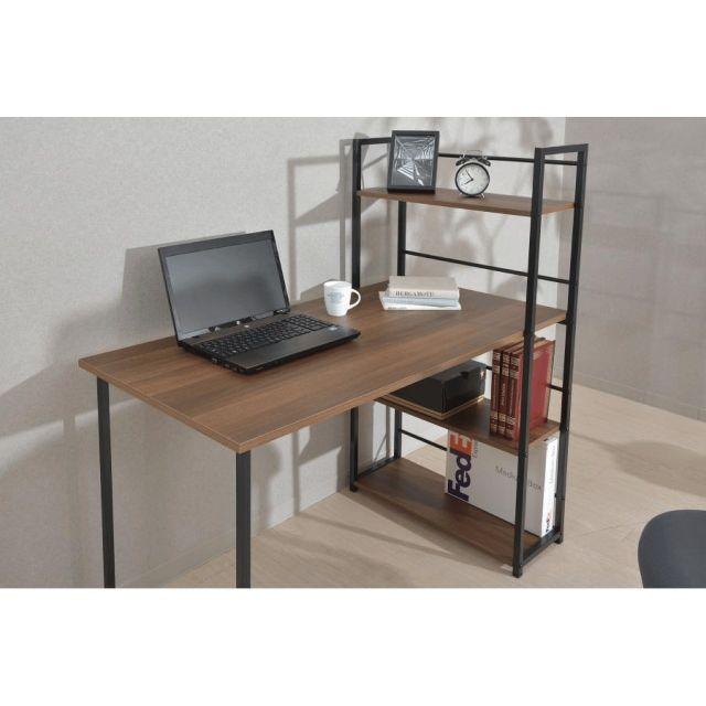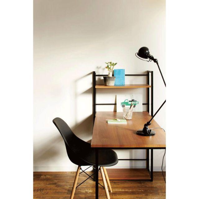 ●オフィスや事務作業に最適なパソコンデスク机の上はすっきりと、だけどPC周辺機器や資料などは手の届く場所に欲しい。そんなあなたの願いを1台で叶えてくれる、パソコンデスクです。●木目調の天板と黒フレームでミッドセンチュリーな雰囲気に。●4段仕切りの棚なので、資料以外に好きな雑貨を置いて気分転換にも。