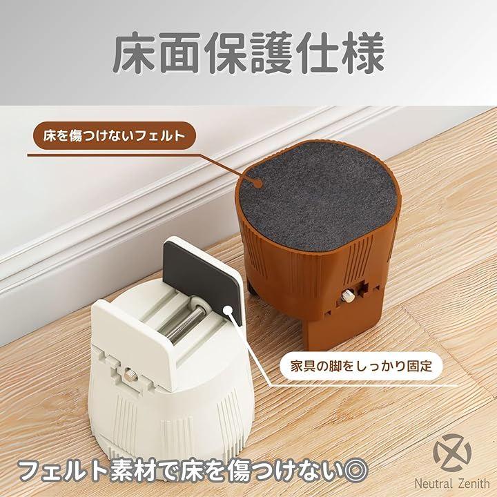家具の脚の幅に合わせて調整して挟むことができ、理想の高さに調整する継ぎ足し脚です。