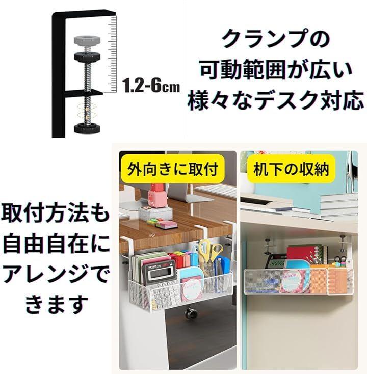 デスクなどの厚さに合わせて幅を調節して、簡単に取り付けることができます。