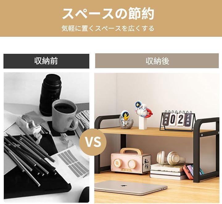 卓上 本棚 ラック デスク収納 棚板高さ調節可 2段 机上台 キッチン収納 調味料ラック ノート パソコン台 卓上