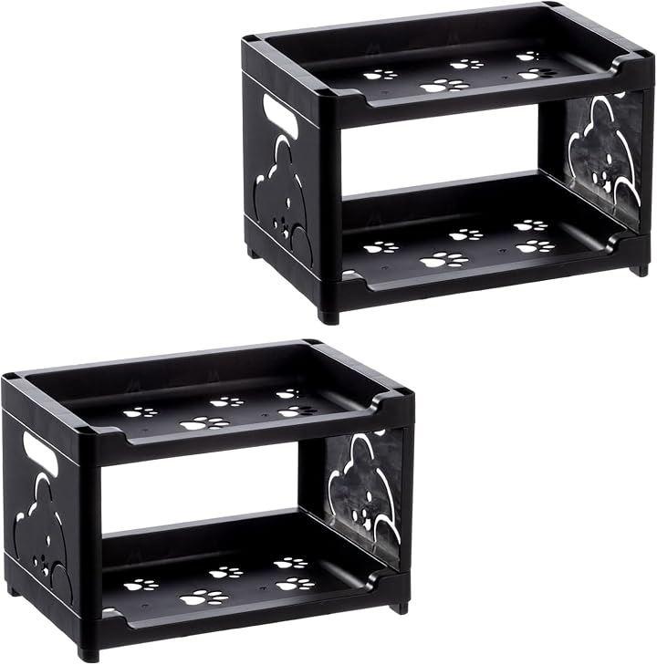 「商品説明」くまのシルエットと肉球模様が可愛い、卓上収納ラック2個セットです。