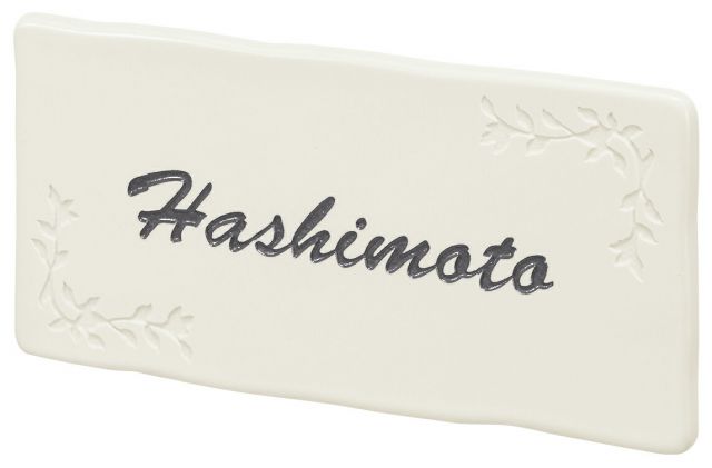 Detached house nameplate, tile, Euro Tile, ceramic tile, base color: white, NUTY-2-25 (letter color: dark gray), Roman letters: brush script (first letter capitalized), design: engraved, approximately 200 x 100 x 9.5 mm, approximately 350 g