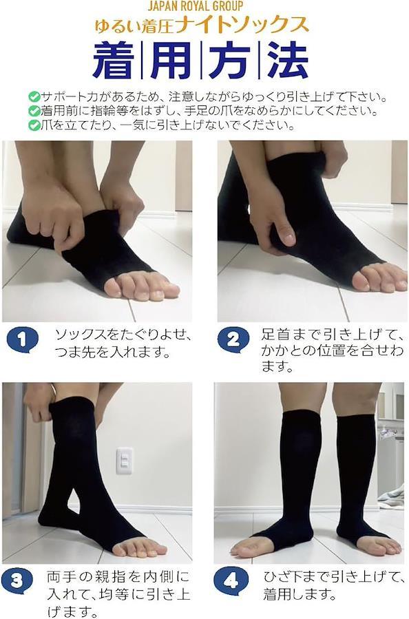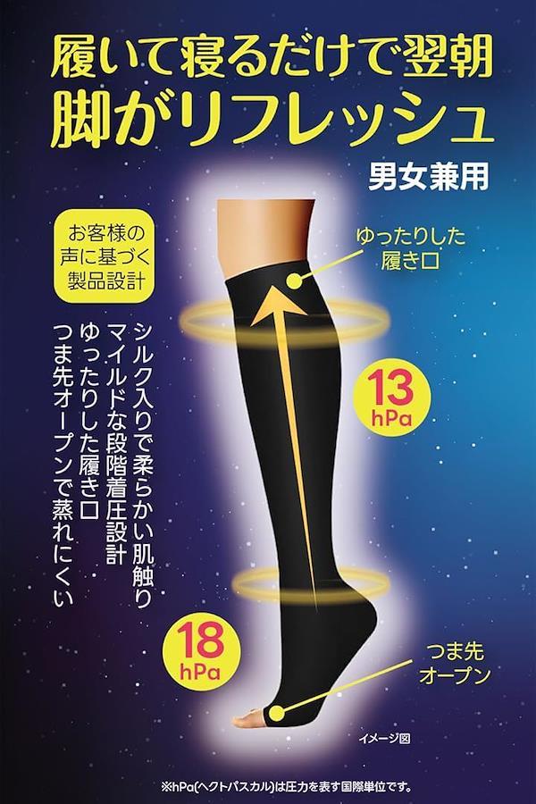 (2)ゆるめの圧とゆったりとした履き口の編み込みで眠りを妨げない。
