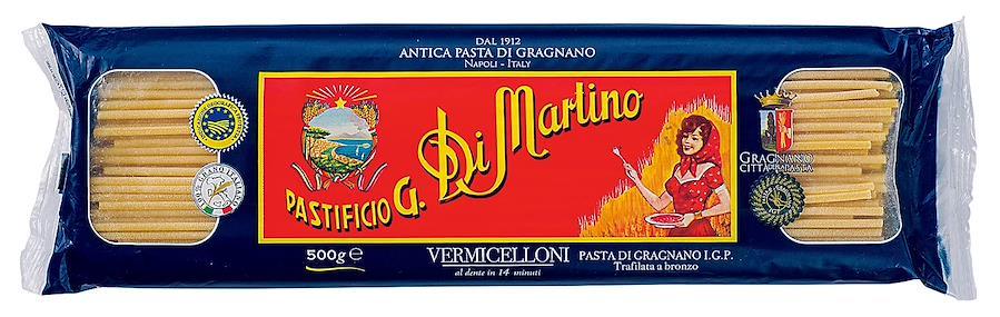 ディ・マルティーノ社は、500年ものパスタ作りの歴史を持つ、南イタリア、カンパーニア州グラニャーノに位置するイタリアを代表する高品質パスタメーカーのひとつです。1912年創業の同社は、イタリアでも最高級の生産地として認められているグラニャーノで3代にわたりパスタ作りを行ってきた伝統あるパスタメーカーです。原料はイタリア産硬質小麦100%にこだわり、伝統的な製法で作る高品質パスタはイタリアでも高い評価を受けています。 ディ・マルティーノ社のロングパスタでは最も太い2.4mm。濃厚なソースをしっかりとパンの中で吸収させて仕上げて下さい。(茹で時間:15分)
