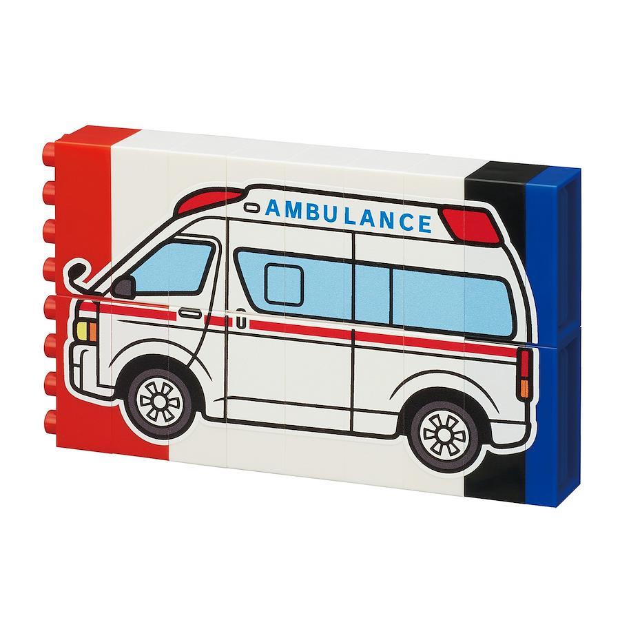平面パズルが立体に変身!!知育ブロック玩具のダイヤブロックに、2wayで遊べる新シリーズが登場!!パトカー、消防車、救急車の緊急車両が3点入ったセット。