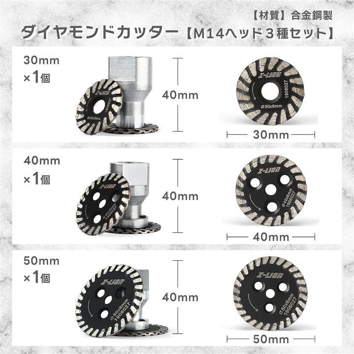 *セット内容:M14ヘッド(直径30mm:外径30 内径8 厚さ2 (mm) 全長40mm、直径40mm:外径40 内径6 厚さ2 (mm) 全長40mm、直径50mm:外径50 内径6 厚さ2 (mm) 全長40mm)