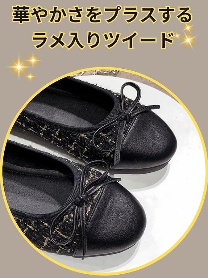 さらにラメを織り込み、さりげなく華やかさをプラスしたフラットシューズです。