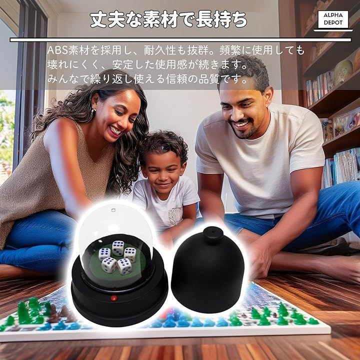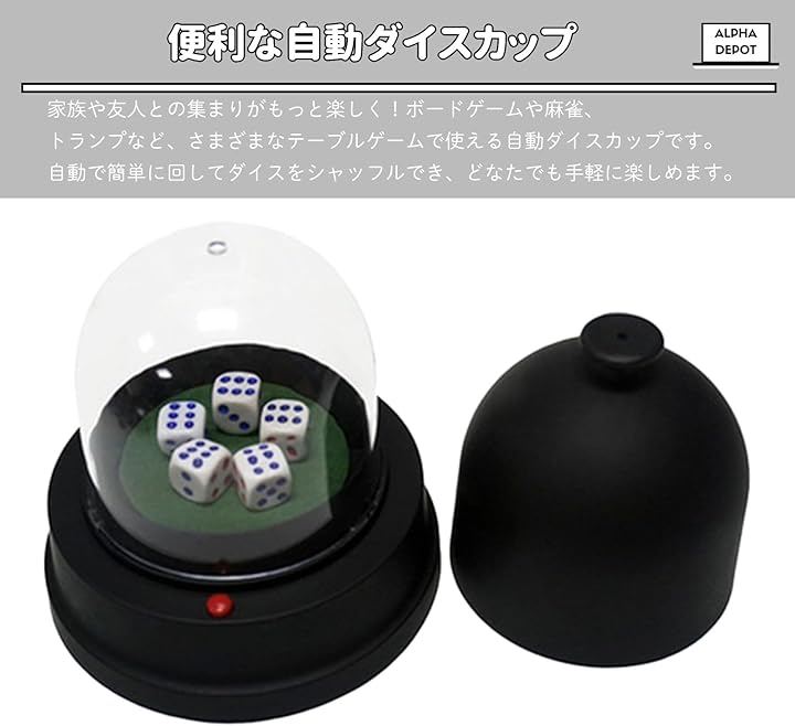 「便利な手動ダイスカップ」家族や友人との集まりがもっと楽しく。ボードゲームや麻雀、トランプなど、さまざまなテーブルゲームで使える手動ダイスカップです。