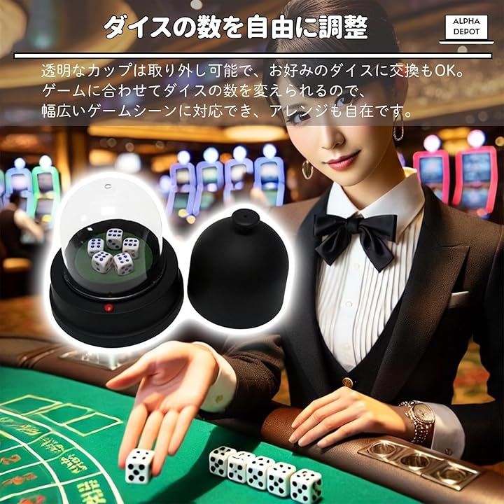 「ダイスの数を自由に調整」透明なカップは取り外し可能で、お好みのダイスに交換もOK。