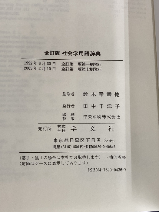 ■商品詳細■ 商品名・社会学用語辞典 全訂版 学文社/ ■商品状態■2005年2月10日 全訂第1版第7刷発行。箱付。箱に多少のスレ、ヤケ、傷み、シミ、表紙に多少のスレ、天地小口に多少のスレ、キズ、があります。本を読むことに支障はございません。※注意事項※■毎商品チェック後出品しておりますが、中古品ということもあり、多少の書き込み等のチェック漏れがあった際はご容赦下さい。■付録等の付属品がある商品の場合、記載されていない物は『付属なし』とご理解下さい。■併売販売をしているため、在庫切れの場合はキャンセルとなります。予めご了承ください。