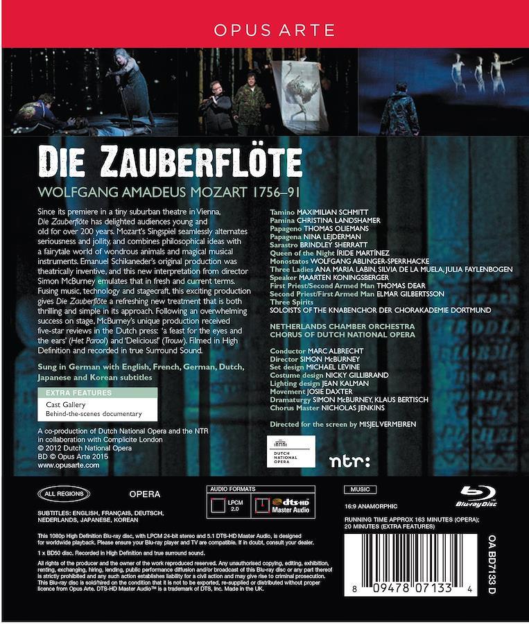 Since it's premiere in a tiny suburban theatre in Vienna, Die Zauberflote has delighted audiences young and old for over 200 years. Mozart's Singspiel seamlessly alternates seriousness and jollity, and combines philosophical ideas with a fairytale world of wondrous animals and magical musical instruments. Emanuel Schikaneder's original production was theatrically inventive, and this new interpretation from director Simon McBurney emulates that in fresh and current terms. Fusing music, technology and stagecraft, this exciting production gives Die Zauberflote a refreshing new treatment that is both thrilling and simple in it's approach. Following an overwhelming success on stage, McBurney's unique production received five-star reviews in the Dutch press: 'a feast for the eyes and the ears' (Het Parool) and 'Delicious!' (Trouw).