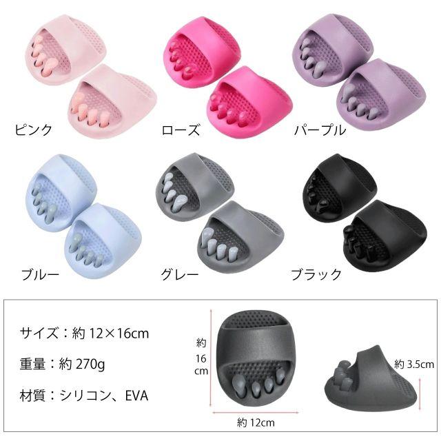 履くだけ簡単!足指から始める美姿勢&美脚+足元ケアができるダイエットスリッパです。【姿勢が自然に整う】土踏まずを支えるアーチ構造が重心と体幹を安定させ、美姿勢に整えます。【履くだけで手軽に足元ケア】4本のやわらかい突起が自然に足指を広げ、正しい位置にキープ!足指を開くことで、癖づいた指の位置を自然な状態に戻し、外反母趾や浮き指などのゆがみをフォローします。かかと部分が短く、つま先重心の半足裏設計で自然とバランスを取るため、体幹や下半身の筋肉が鍛えられ、美姿勢・美脚へと導きます!足裏の突起が歩くたびにツボを刺激し、むくみ解消や血行促進に◎汚れても丸洗いが可能。足指パッドは簡単に着脱ができ、簡単にお手入れができます。履くだけで自然と巡りのいい身体へと導く、ダイエットサポートシューズです。