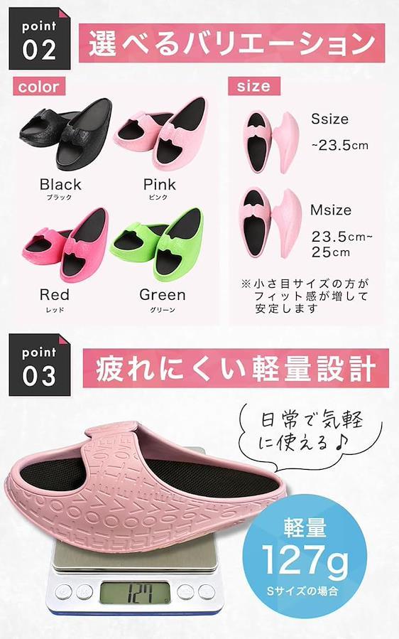 「軽量設計で疲れにくい快適なダイエットスリッパ」 片足わずか約127g(*Sサイズの場合)と軽量で長時間履いても疲れにくい設計。