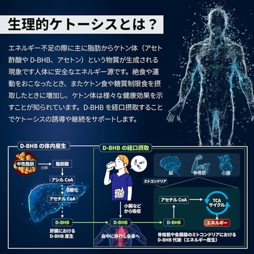 理想に燃えるあなたへ!ダイエッターサポートの新たな味方!! アメリカで大人気のBHBサプリ国産で遂に登場!! 「天然由来ケトン体 natural BHB KETOru 3000」BHBサプリメントの決定版! ■ケトン体D-BHBを3000mg配合!※D-β-ヒドロキシ酢酸※1日摂取目安量。余計な物は要りません。ケトジェニックダイエッターサポートに必要なBHB(ケトン体)のみをMAX配合! ■そもそもケトン体とは? ケトン体とは、D-β-ヒドロキシ酪酸 (D-BHB) 、アセト酢酸、 アセトンの総称のことで、体内で主に脂肪分から生成されるエネルギー源の働きをします。 D-BHB(D-β-ヒドロキシ酪酸)は、糖質制限や絶食時において糖質に代わるエネルギーとして利用され、ケトジェニックや様々な生理機能による健康効果に注目が集まっています。 ■ケトジェニックとは? 生理的ケトーシスへの誘導を目的に、体内のケトン体濃度が増えている状態、または糖質の摂取量を制限して脂質をエネルギー源として利用する食事療法を指します。ケトジェニックダイエットとも呼ばれ、近年はアスリートやスポーツ愛好家の間で流行しています。 ■生理的ケトーシスとは? エネルギー不足の際に主に脂肪からケトン体という物質が生成される現象です。ケトン体はアセト酢酸やD-BHB(D-β-ヒドロキシ酪酸)、アセトンなどから構成されており、人体に安全なエネルギー源です。絶食や運動をおこなったとき、またケトン食や糖質制限食を摂取したときに増加し、ケトン体は様々な健康効果を示すことが知られています。 ■天然由来ケトン体 本製品のD-BHB原料はサトウキビやテンサイ等から作られるショ糖から発酵法により製造された「天然由来」の食品原料を使用しています。 ■大阪ガス株式会社が開発した「D-β-ヒドロキシ酪酸(D-BHB)」を使用 大阪ガス株式会社はバイオガス製造の開発を通じて蓄積した独自の発酵技術を応用し、ハロモナス菌からBHBを生産できる技術を確立しました。