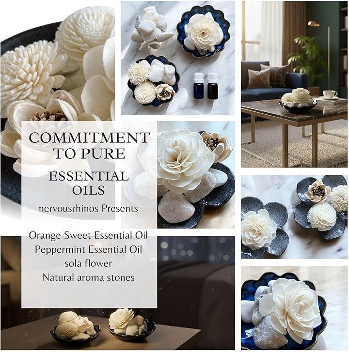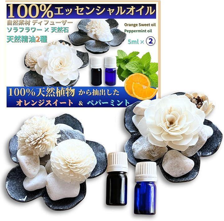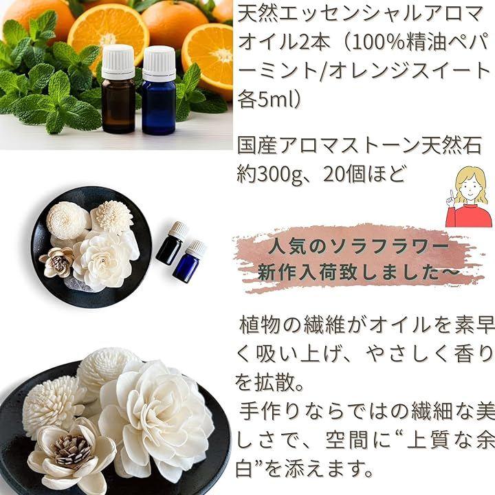 100%天然エッセンシャルオイルの豊かな持続性 寒水石は香りをゆっくりと、ソラフラワーは素早く香りを放ち、ふんわり広げます。
