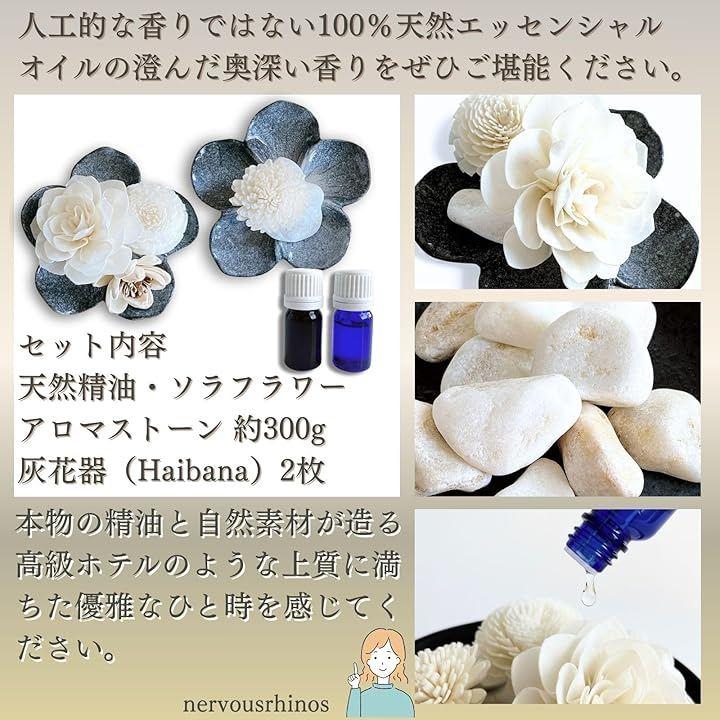 国産の天然アロマストーン(寒水石)と、植物ソラから作られた手作りフラワーを組み合わせたアロマディフューザー。