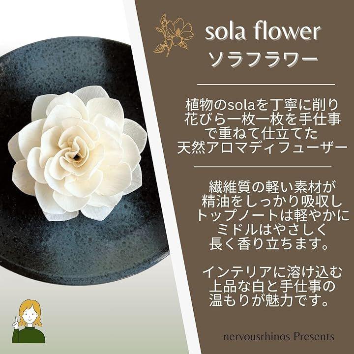 国産の天然アロマストーン(寒水石)と、植物ソラから作られた手作りフラワーを組み合わせたアロマディフューザー。