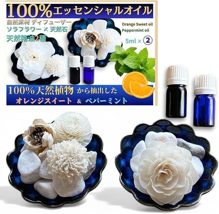 100%天然エッセンシャルオイルの豊かな持続性 寒水石は香りをゆっくりと、ソラフラワーは素早く香りを放ち、ふんわり広げます。