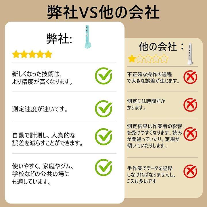 「軽量設計」軽量でコンパクトなこの身長計は、簡単に持ち運んでどんな場所でも簡単に使用できます。