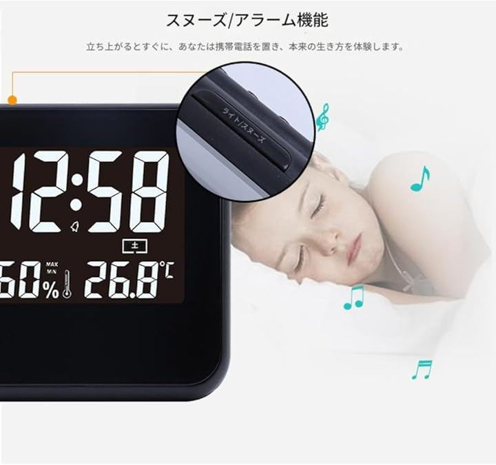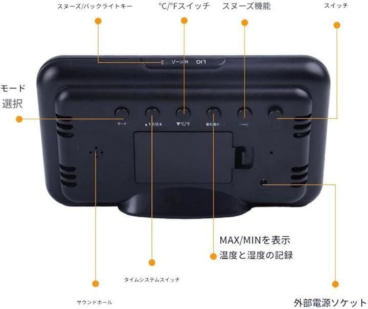 「自分好みにカスタマイズ」時刻(12時間または24時間制)カレンダー(月/日/曜日)スヌーズ機能付きアラーム、自動バックライト機能(USB使用時は常に点灯、電池使用時は「LIGHT/SNOOZE」ボタンで調整可能)