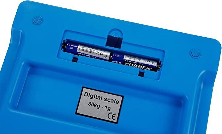 「計量器」最大計量:30kg、計量範囲:0.01kg~30kg、最小表示:1g、電源:単3電池2個