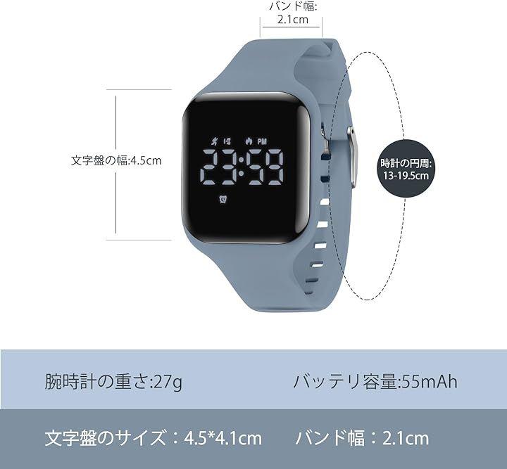 歩数計、歩行距離、カロリー、ストップウォッチ、目覚めし、日付曜日表示の機能を搭載し、携帯電話に接続することなく使用できるミニのスマートウォッチ。