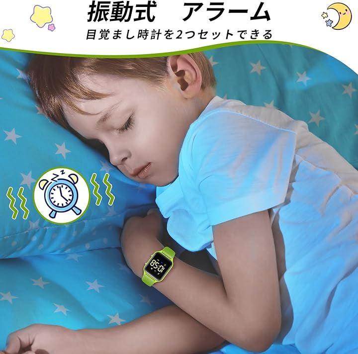 静音振動目覚まし時計:デジタル時計は2つの静音振動目覚まし時計を設置でき、子供の学習や休憩時間の管理を助けることができます。