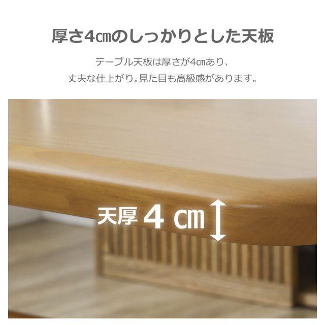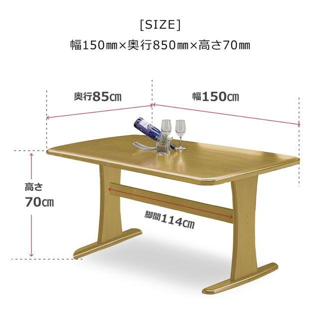 ●出入りがしやすいT字脚!●厚さ4cmの無垢材天板が高級感を演出します。●角丸加工でお子様や高齢者も安心の設計で触り心地もよく、優しい雰囲気のテーブルです。●水に強いPU塗装でお手入れも簡単です。●回転椅子(別売)と相性抜群のダイニングテーブルです。
