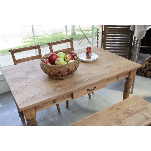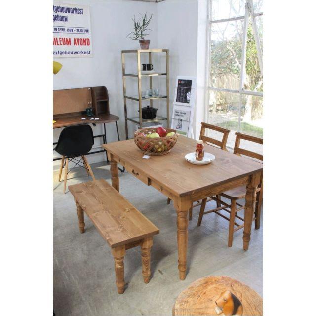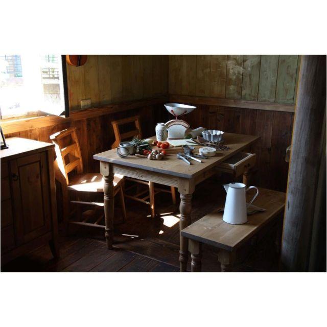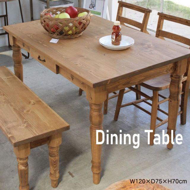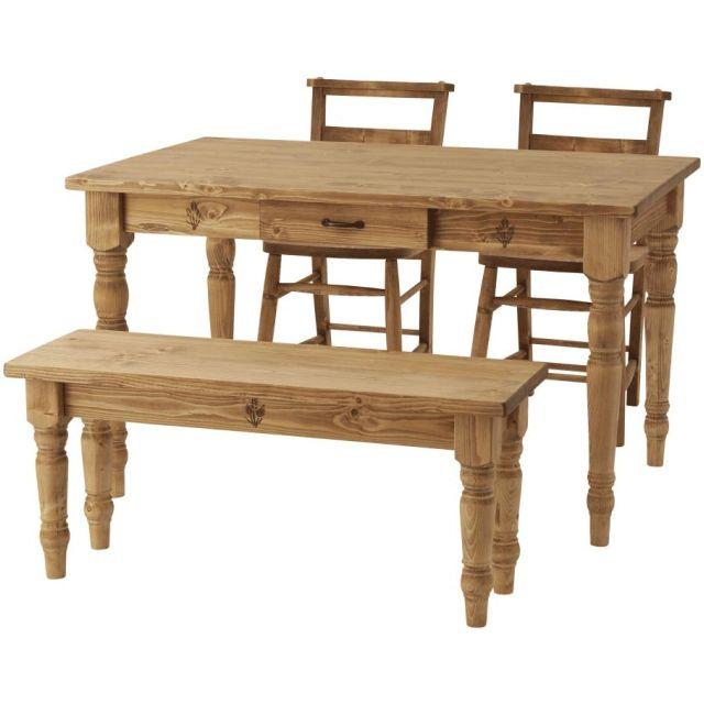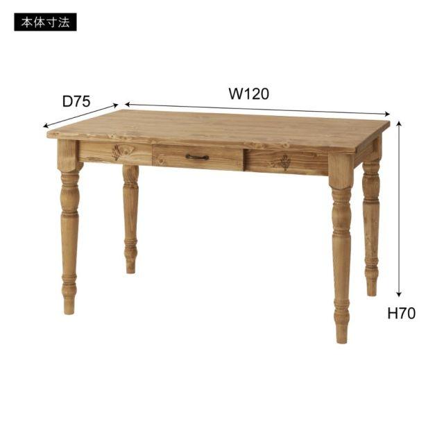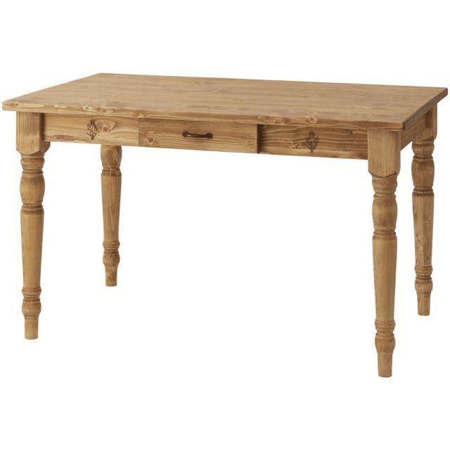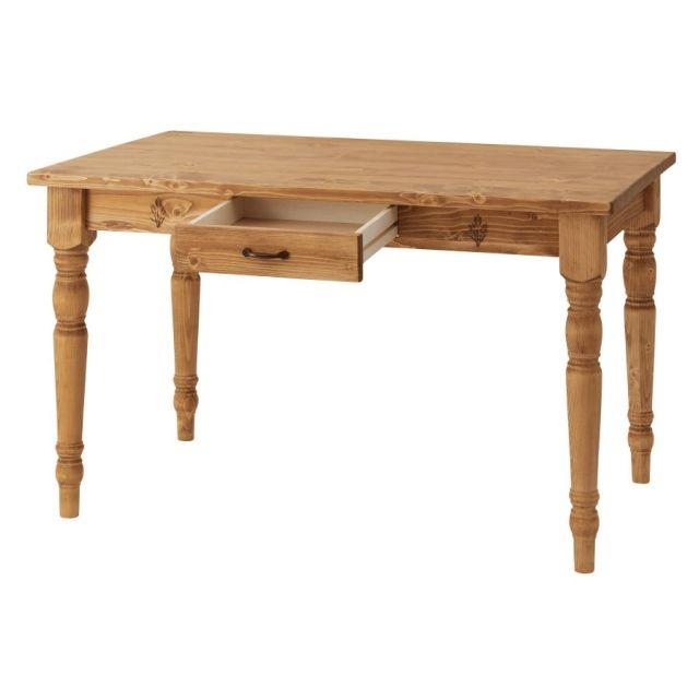天然木(パイン)の木目が美しい、北欧テイストのダイニングテーブル。長辺側に引き出しが付いているので、フォークやスプーン、お箸等のカトラリー類をしまっておくのに便利です。〈製品規格〉【商品サイズ】