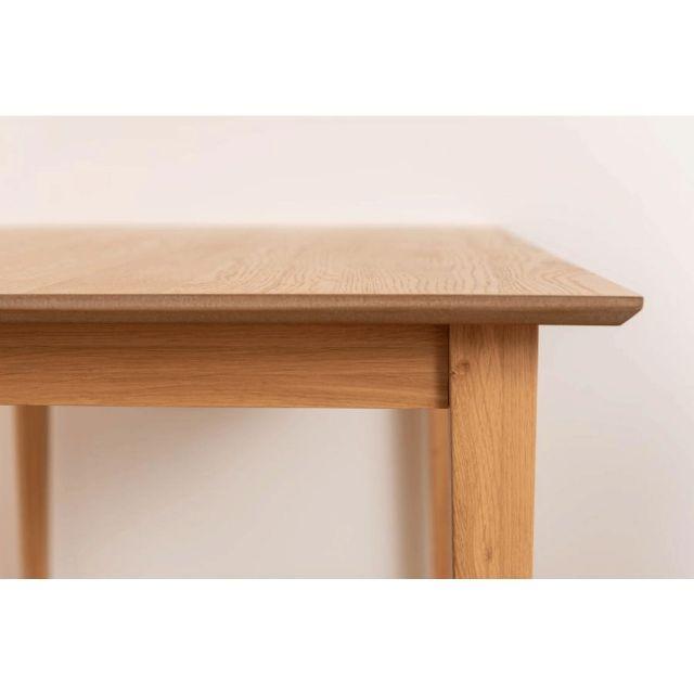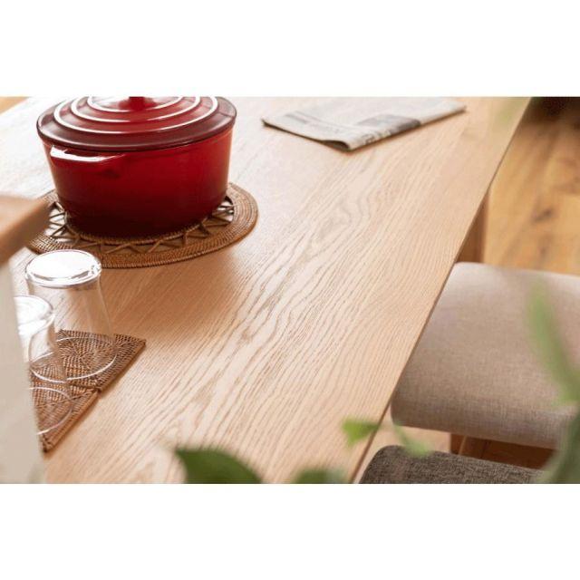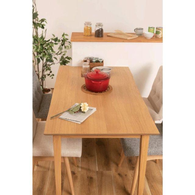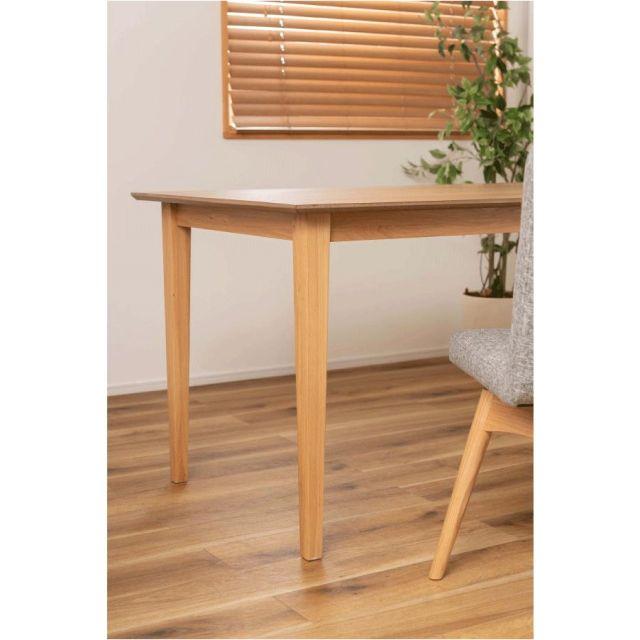●ホワイトオークの木目を活かした、シンプルなデザインのダイニングテーブル。●木目が美しいホワイトオークを使用。清楚感があり上品な色味と木目が特徴で、ナチュラル系インテリアの代表的な材として、オーク材の魅力を活かしたシンプルなデザイン。●脚は天板側から床側にかけて徐々に細くなっていくテーパードレッグ。ダイニングスペースが重くなりすぎず、様々なチェアに合わせられるデザイン。●天板のエッジは斜めにカットしデザイン性の高い仕上がり。●木目の表情を活かした天板が食卓に彩りを与えてくれます。