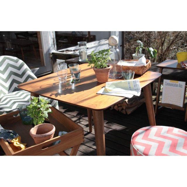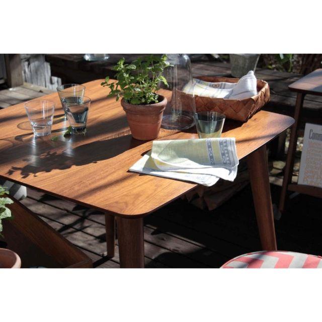 ●天然木(ラバーウッド)を使用した、シンプルデザインのダイニングテーブル。