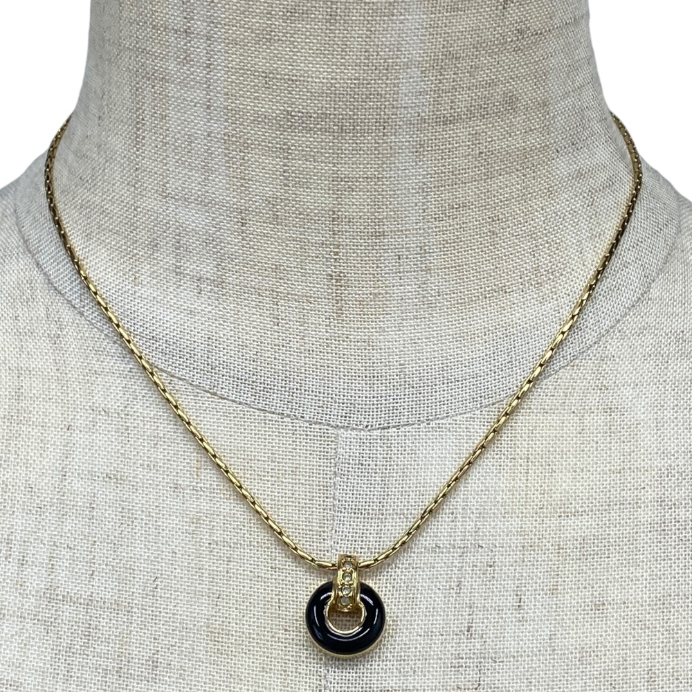 【ブランド】Christian Dior クリスチャン・ディオール【商品名】ネックレス【商品番号】-【カラー】ゴールドカラー/ブラック系【サイズ】トップ 約1.3cm(サークル部分) チェーン長さ38cm+アジャスター 約5cm【素材】ラインストーン×GP【付属品】-【ランク】AB(一般中古~良品)【コメント】薄スレ/小傷若干/くすみ(小)【管理番号】0224a0470s商品情報