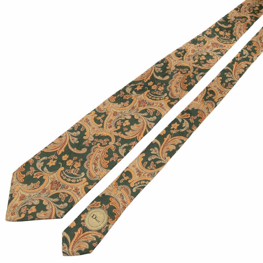 こちらは、複雑なペイズリー柄が芸術的な深みを与えます、ディオールのネクタイでございます。