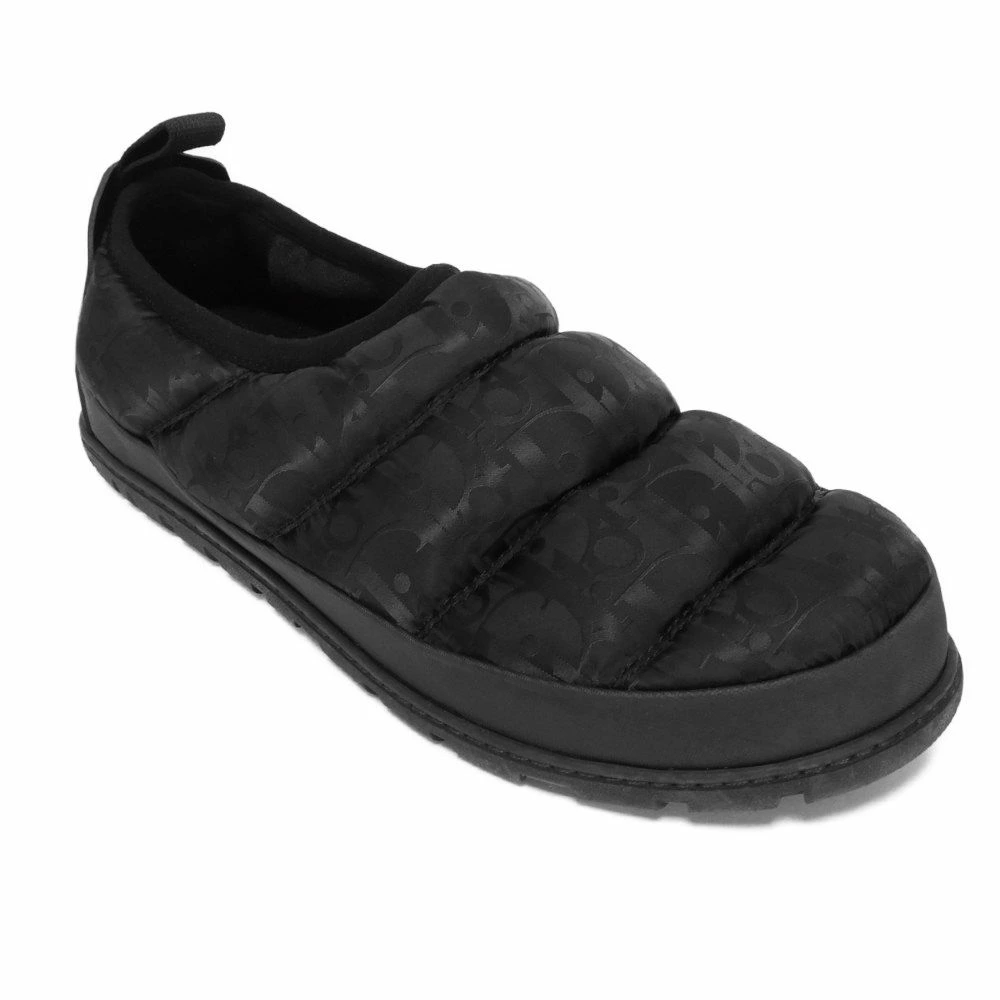 | キルティングステッチが施された、ナイロン素材にディオールのロゴパターンがデザインされた「オブリーク スノー スリッパ」スリッポンです。 |
