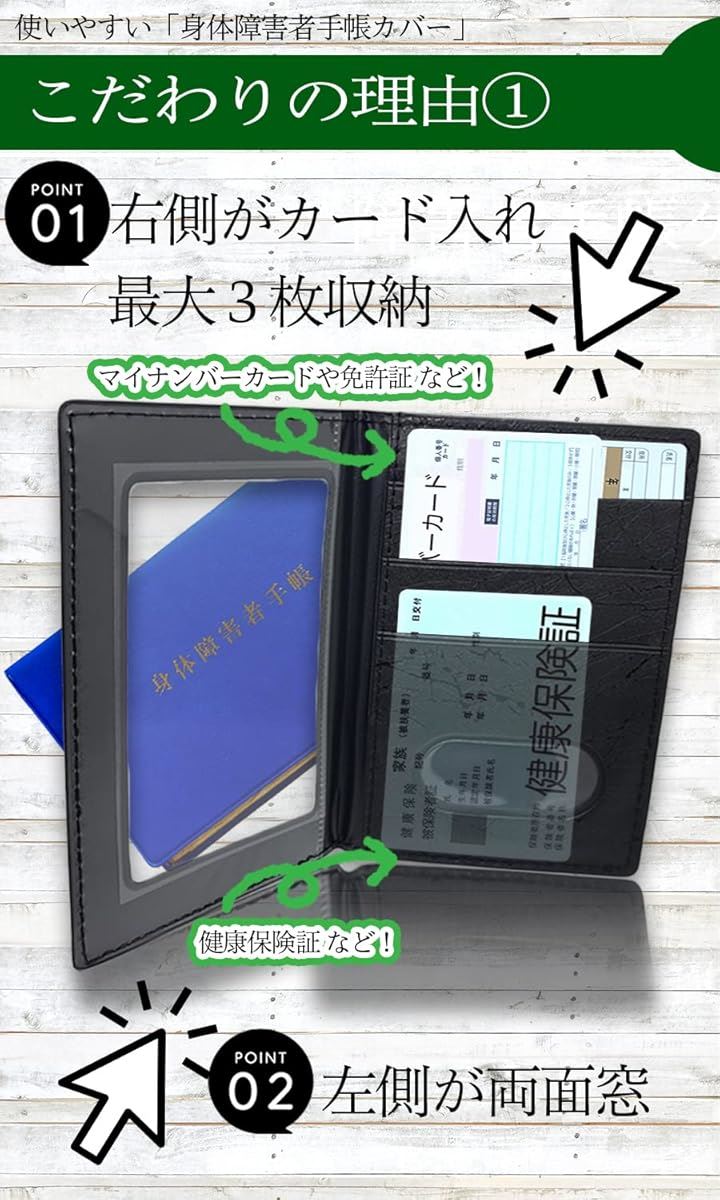 「サイズ」14cm x 10cm(窓枠:10.6cm x 6.8cm)、重さ28gのコンパクトサイズですが、各自治体の障害者手帳サイズ対応。