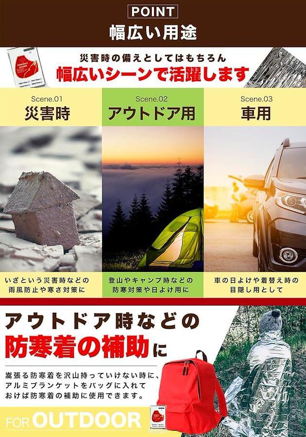「緊急時のヒーロー。頼れる1枚」 持っているだけで安心感抜群。体温保持・遮熱・プライバシー保護まで、この1枚で多用途に活躍。