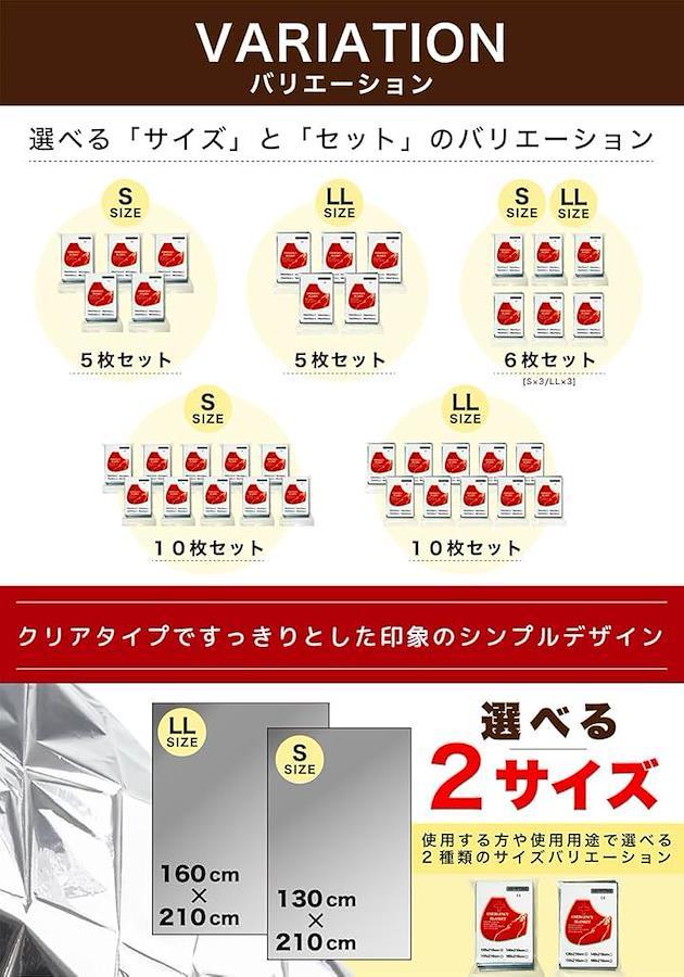 「商品仕様」 Sサイズ:210x130cm 梱包時12x7x0.8cm 50g LLサイズ:210x160cm 梱包時12x7x1.2cm 59g
