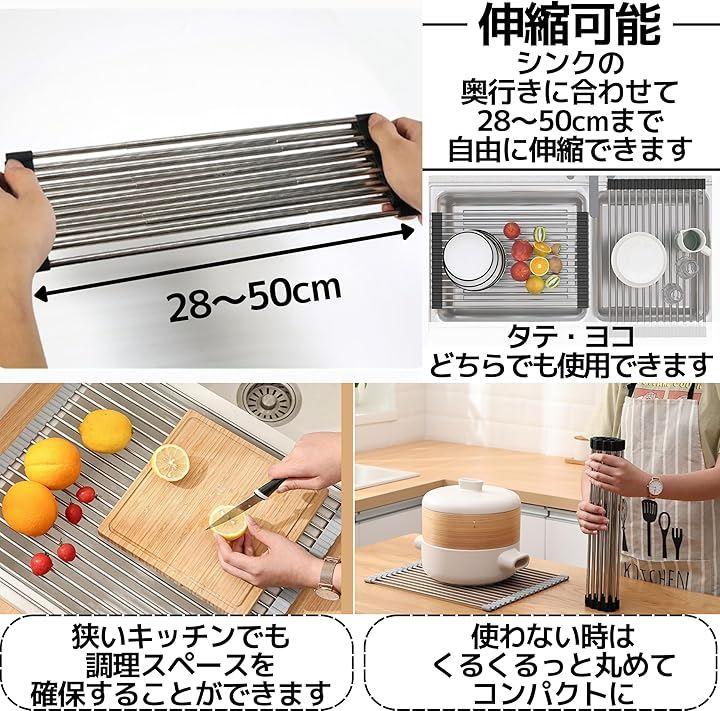 小さなシンクにもピッタリで、伸縮や折りたたみができるので、キッチンのレイアウトや使用状況に合わせて自在に活用できます。