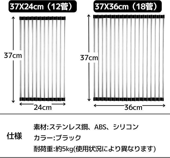 「仕様」サイズ:37X24cm(12管)/37X36cm(18管)、素材:ステンレス鋼、ABS、シリコン、カラー:ブラック、耐荷重:約5kg(使用状況により異なります)
